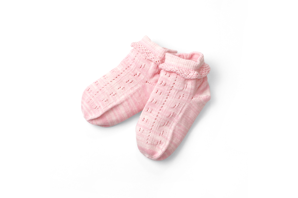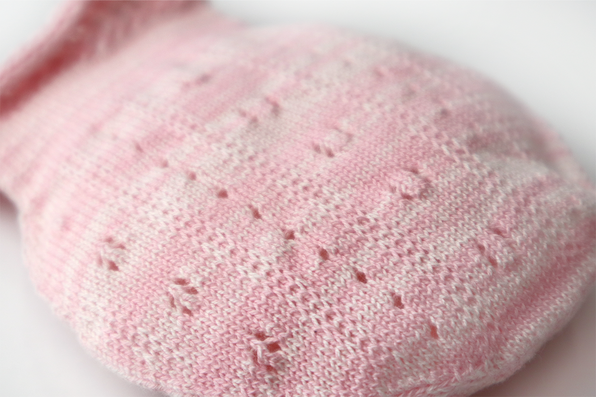 無縫製(ホールガーメント®*)のため縫い目による引っ掛かりが無く、繊細な赤ちゃんの肌をやさしく包みます。